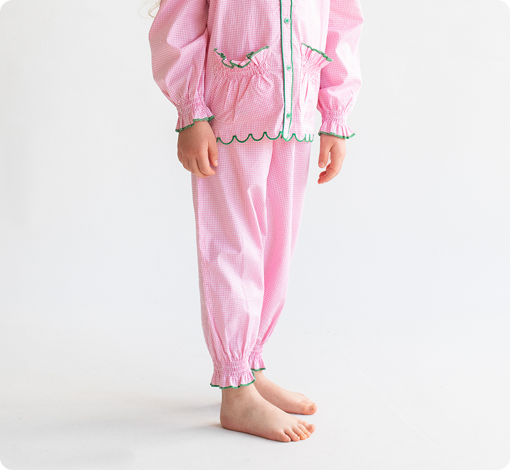 Tatlı rüyalar garanti! Yumuşacık kumaşı,fırfır detayları,pötikare pembe kumaşıyla minik prenseslerin favori pijaması